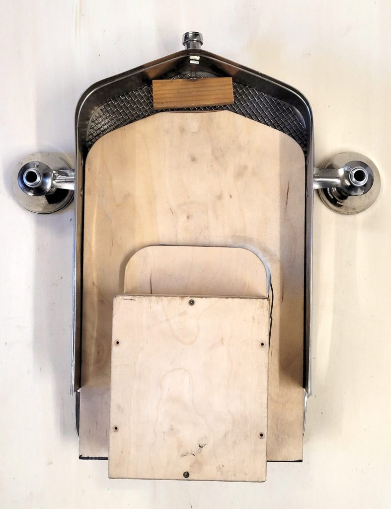 | Sonstiges: | Stahlblech, vernickelt, Trennwand und Batteriefach Holz |