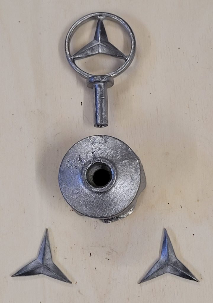 | Abmessung: | Dom, Dm, 4,5 cm, H = 3 cm, Stern Dm. 4 cm, Gesamthöhe = 6,2 cm + zwei kleine Sterne, 3,3 x 3,3 cm |