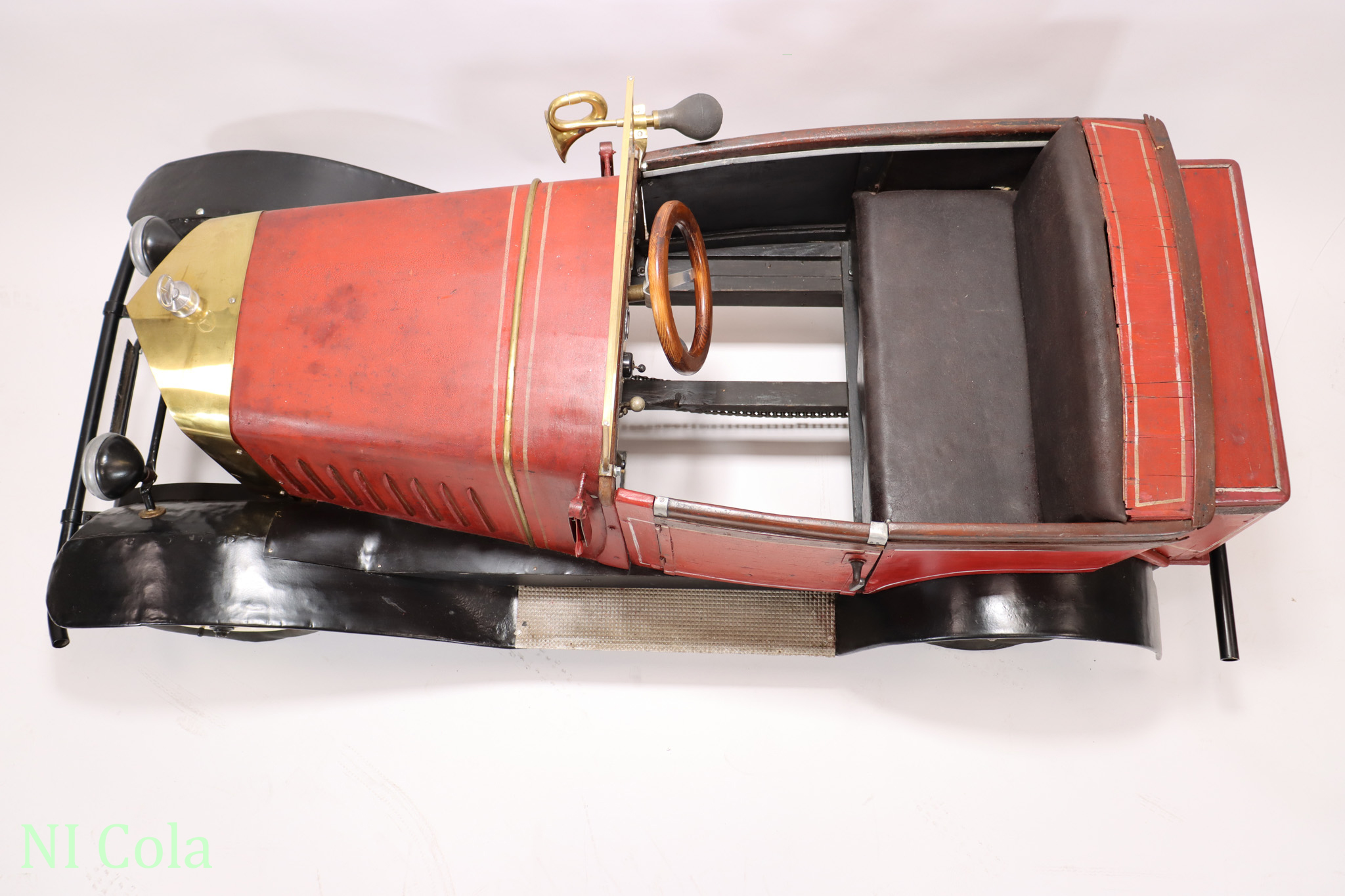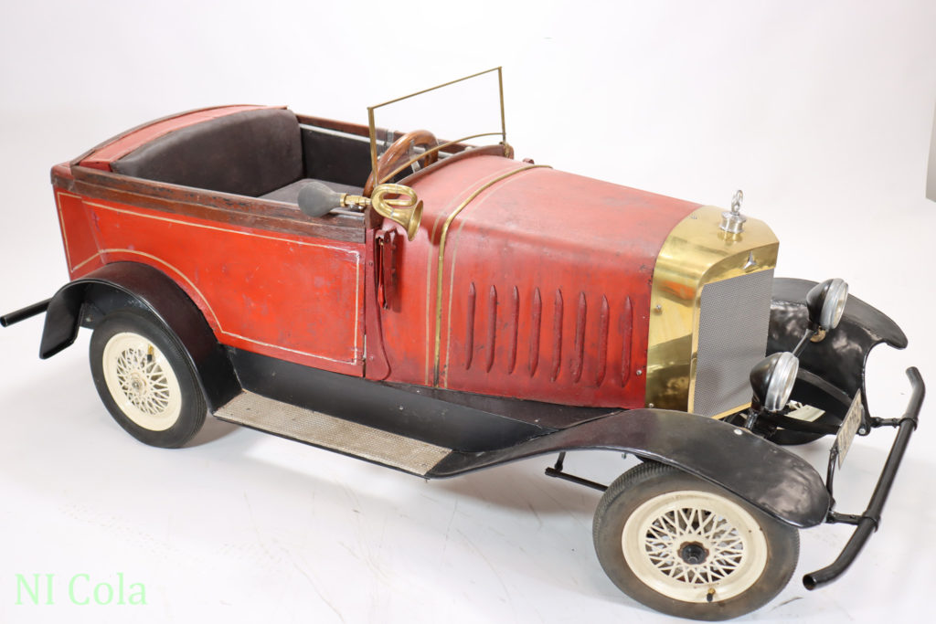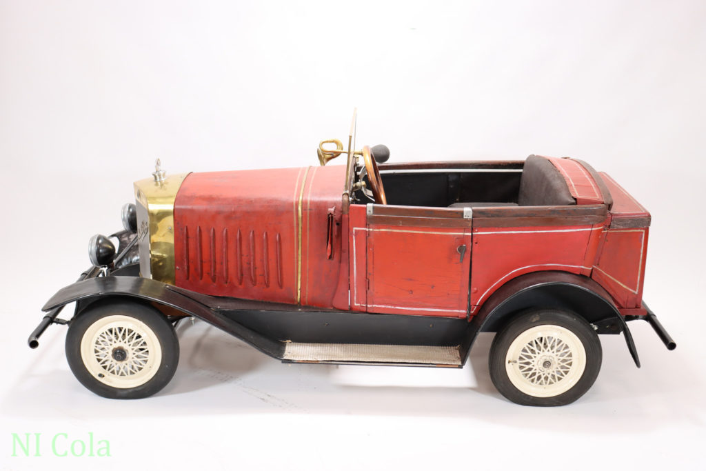 Ausstattung: | Kotflügel mit Trittbretter, Stoßstange vorn und hinten, mit Trittbretter, Scheinwerfer und Rücklicht, Tür zum Öffnen, Kofferaufbau, gepolsterte Sitzbank, Nummernschilder vorn und hinten, Armaturenbrett, Winker über Seilzug, Ballhupe und Windschutzscheibe. |