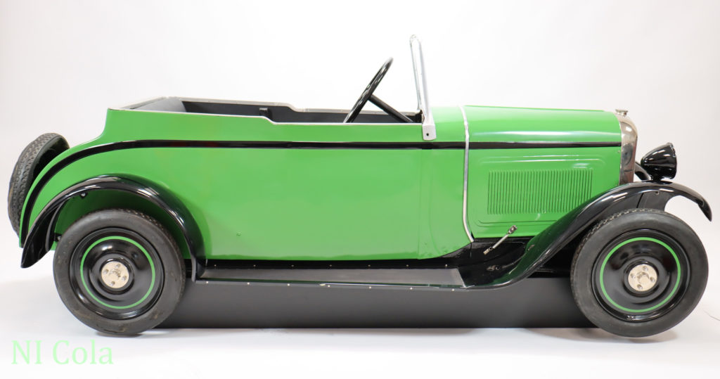 André Citroen, ein begnadeter Mann mit vorausschauenden Ideen, war einer der Ersten, der im Kinderauto ein Mittel der Werbung für seine Produkte und im Kind seinen potentiellen Kunden sah. Das Kind, so behauptete er, sollte von klein auf drei Worte lernen: „Mama, Papa und Citroen“. Es sollte auch nicht sagen „mein Auto“, sondern „mein Citroen“. Eine große Werbekampagne setzte er in Gang, um die Sympathien der Kinder zu gewinnen. Das erste Tretauto, der kleine „5 HP“ wurde 1925 entworfen, gebaut und an alle Vertragshändler von Citroen ausgeliefert.