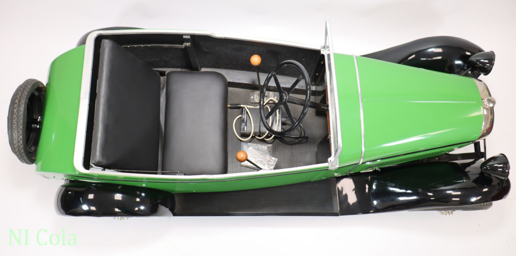 | Ausstattung: | 12 Volt Anlage: Hupe, 2 Scheinwerfer, Voltmeter, Luftbereifung, Reserverad, Handbremse, Federung |