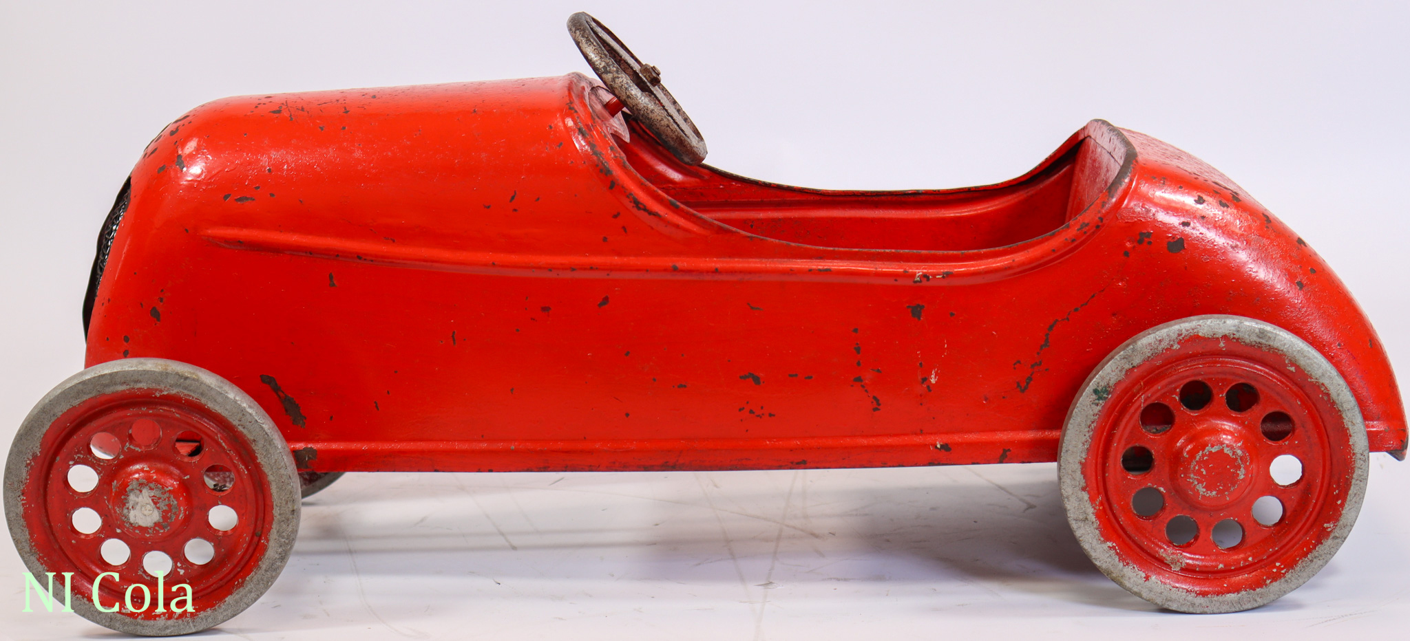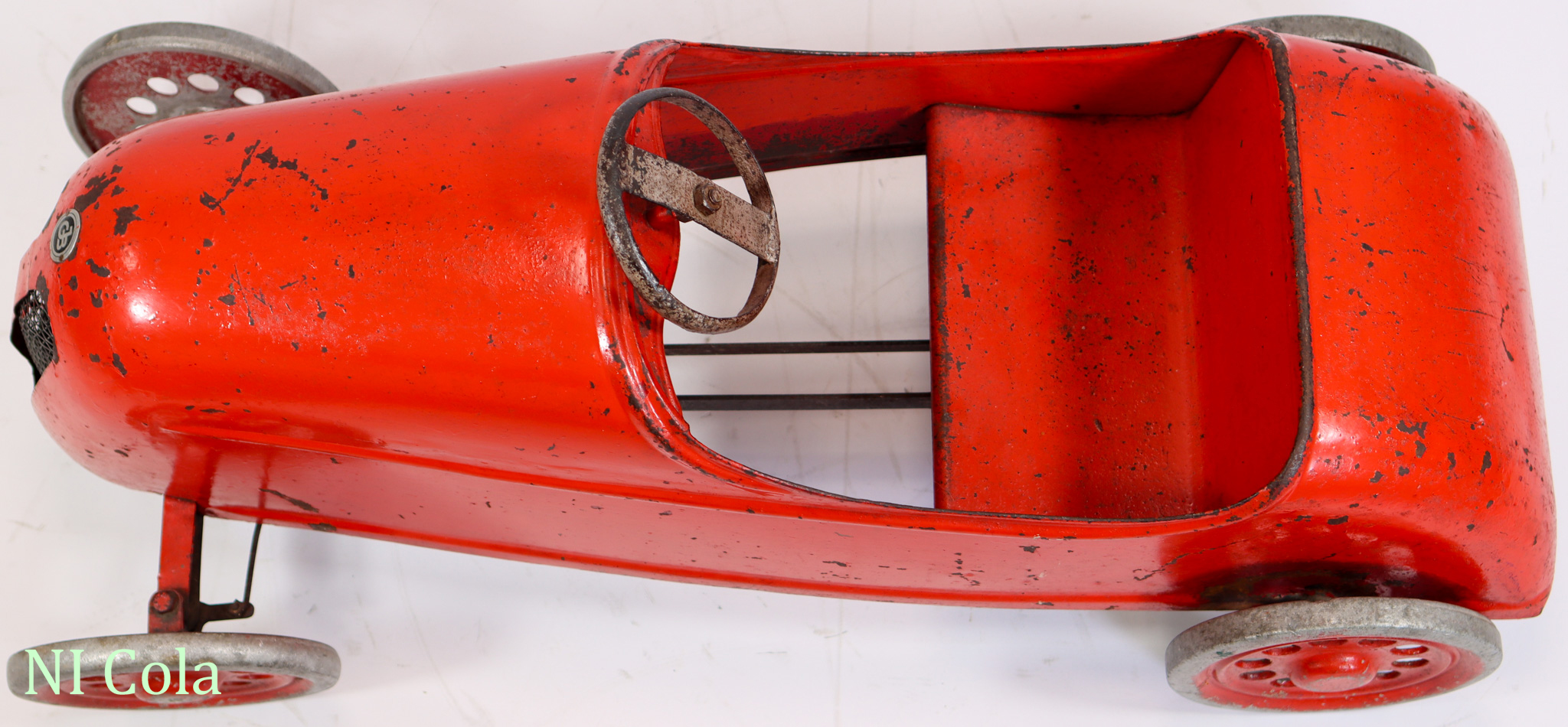 Ihle – BMW Dixie Hersteller:Ihle Modellname:BMW Dixie Inventarnummer:0239 Ort:Bruchsal Land:Deutschland Zeit/Epoche:1938-48 Länge:105 cm Breite:45 cm Höhe:44 cm Karosserie:Stahlblech, lackiert, Fahrgestell:Stahl Räder:Aluminiumguss Scheibenräder Antrieb:Tretmechanismus Zustand:Originalzustand