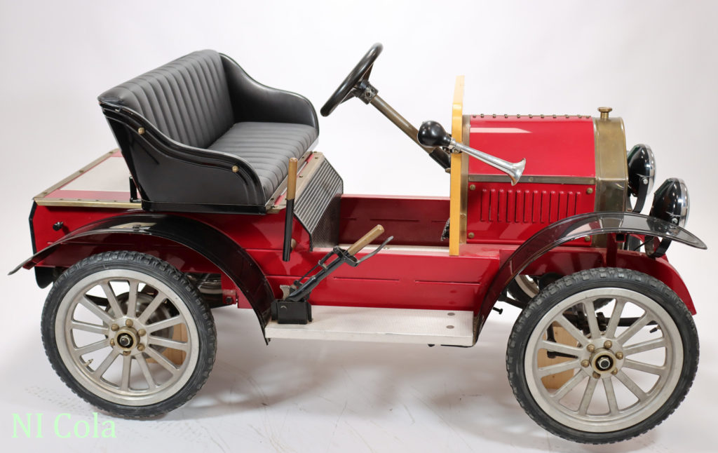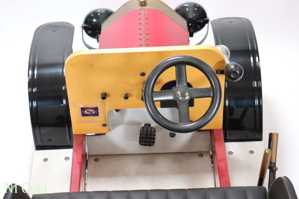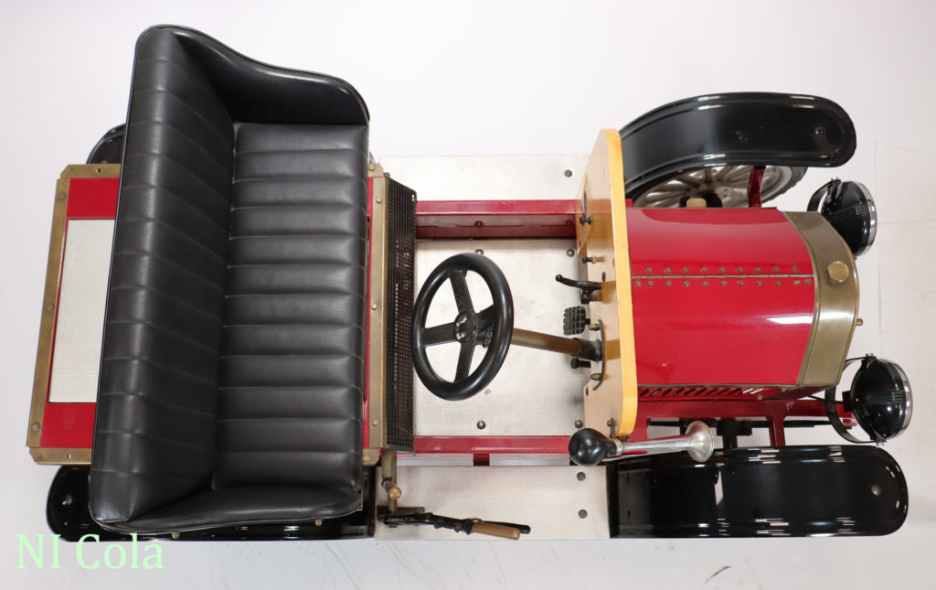| Ausstattung: | Scheinwerfer, elektrisch, Ballhupe, Handbremse, Federung, gepolsterte Sitzbank, Kotflügel und Trittbretter. |