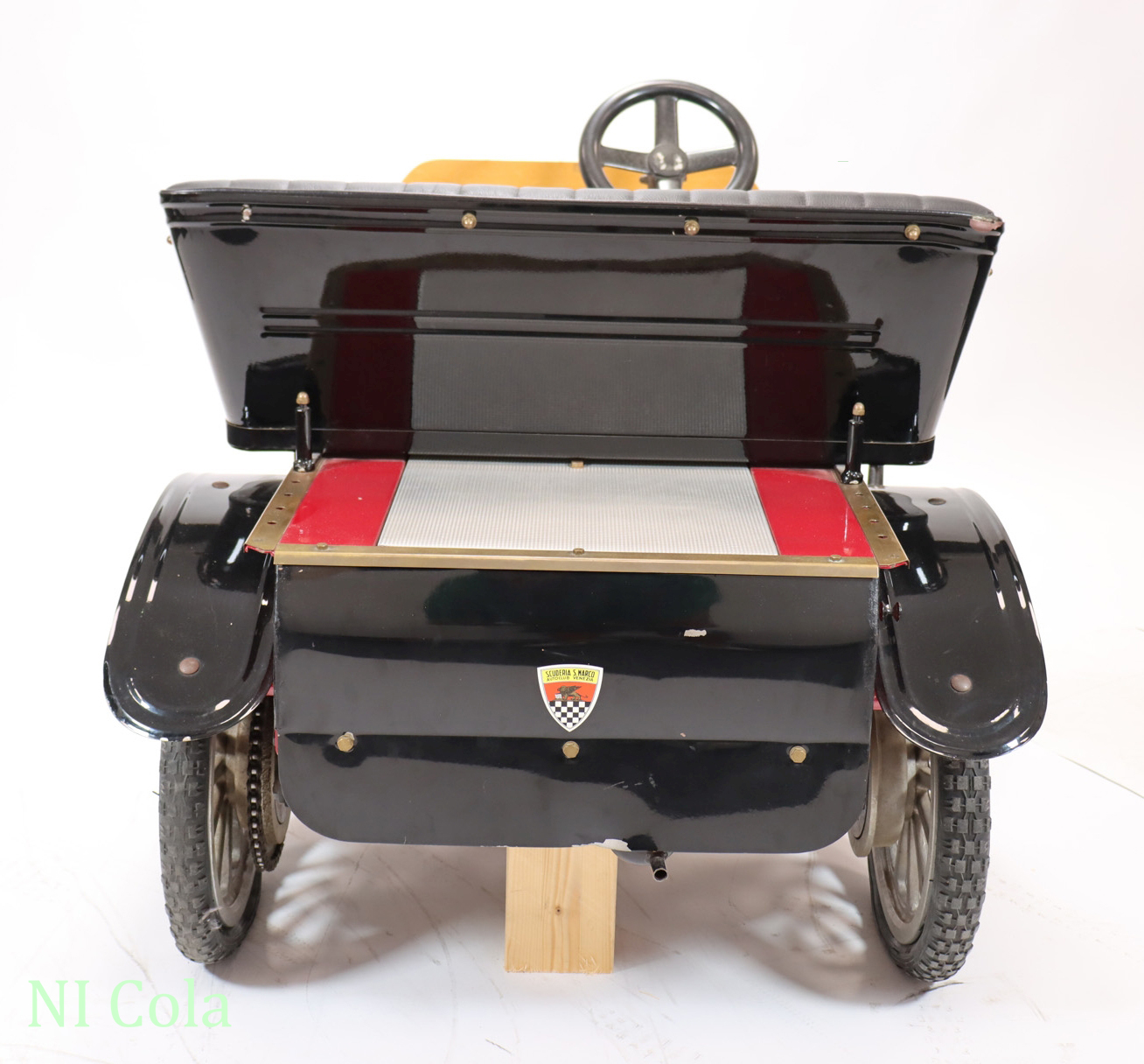 | Ausstattung: | Scheinwerfer, elektrisch, Ballhupe, Handbremse, Federung, gepolsterte Sitzbank, Kotflügel und Trittbretter. |