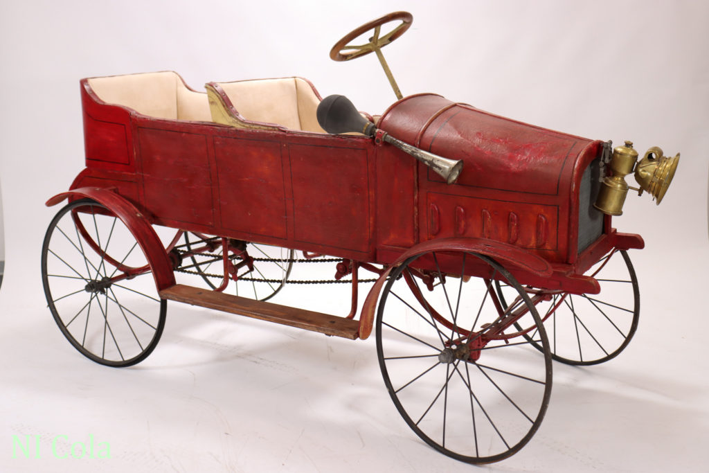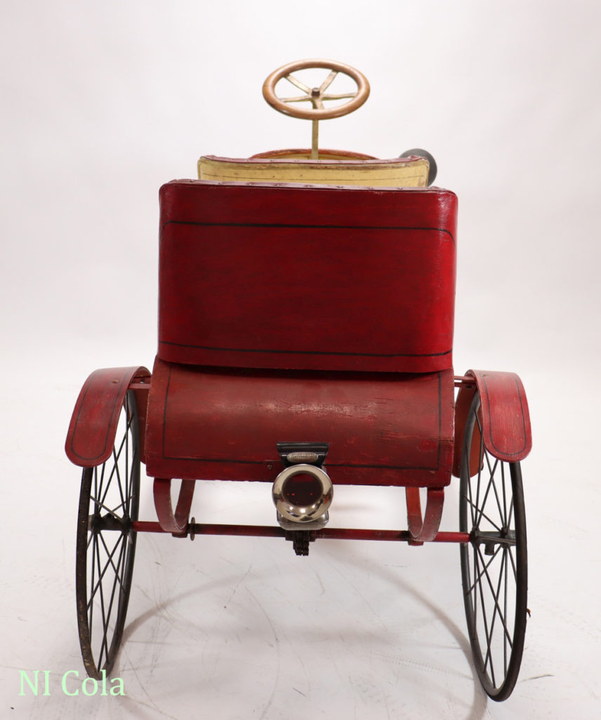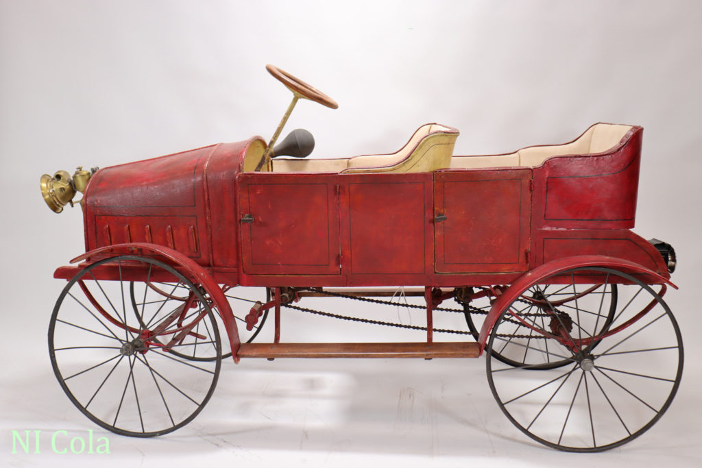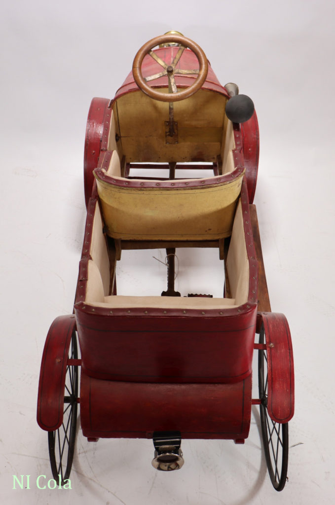 Die ersten Spuren von Tretautos in Europa findet man in einem Katalog des Warenhauses Bon Marché in Paris aus dem Jahr 1902. Die Konstruktion ist einfach. Es gibt Stahlrahmen, Holz- oder auch dicke, geprägte Pappkarosse und vier Fahrradräder, die schon zum Teil Hartgummibereifung aufweisen. Die Herstellung erfolgte im handwerklichen Stil bei großen Fahrradherstellern. Das spiegelte sich im Preis wider, denn ein Einsitzer-Tretauto kostete ca. 50 – 80 Franc beim Zweisitzer (hintereinander) waren es schon 110 – 180 Franc. Der Kreis der Käufer eines solchen modernen Spielzeug war dadurch schon sehr stark eingeschränkt. Die Benutzung war nur auf den wenigen befestigten Straßen, in Schlossparks oder in den verzweigten Gängen eines Schlosses oder Landsitzes möglich. Erst einige Zeit später ermöglichte es die industrielle Fertigung dieses Luxusspielzeuges mit der Nutzung von Stahlblech und den damit verbundenen neuen Technologien, einen breiteren Käuferkreis zu gewinnen. Die Epoche des „Blechspielzeugs“ begann.