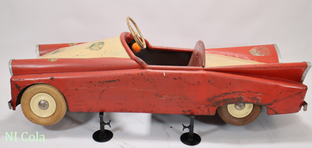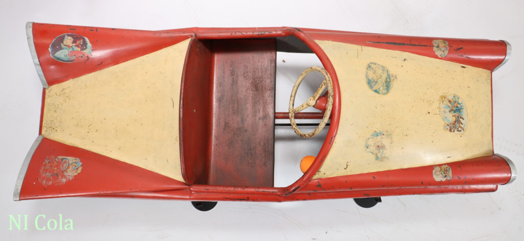 | Ausstattung: | Frontscheinwerfer, elektrisch, Stoßstangen, Rückstrahler, Ballhupe, Lenkung über Seilrolle. |
