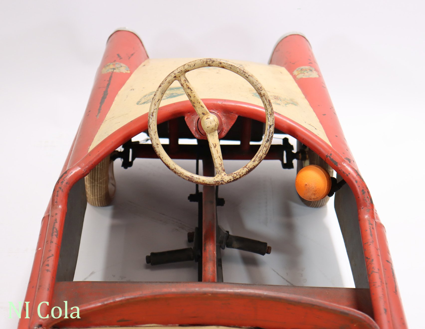| Ausstattung: | Frontscheinwerfer, elektrisch, Stoßstangen, Rückstrahler, Ballhupe, Lenkung über Seilrolle. |